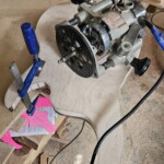 Making a neck is tricky.Β  The wood stock needs to be flat and straight and dimensioned properly.Β  It was some work with the planer.Β  The headstock is at a 13 degree angle to the neck.Β  For that I made a scarf joint which required me to make an angle jig for cutting on the table saw.Β  It worked just fine and I glued it up with epoxy.Β  Next was the installation of the truss rod, which was straightforward.Β  I used a 24” StewMac Hot Rod Low Profile 2-Way Truss Rod and routed it in the center of of the neck.Β  The glue-up with the fingerboard went really well.Β  Some initial shaping with the band saw was next to provide the taper for the neck.Β  After this I used a 9.5” radius block on a jig to sand a slight curve in the surface of the fingerboard.