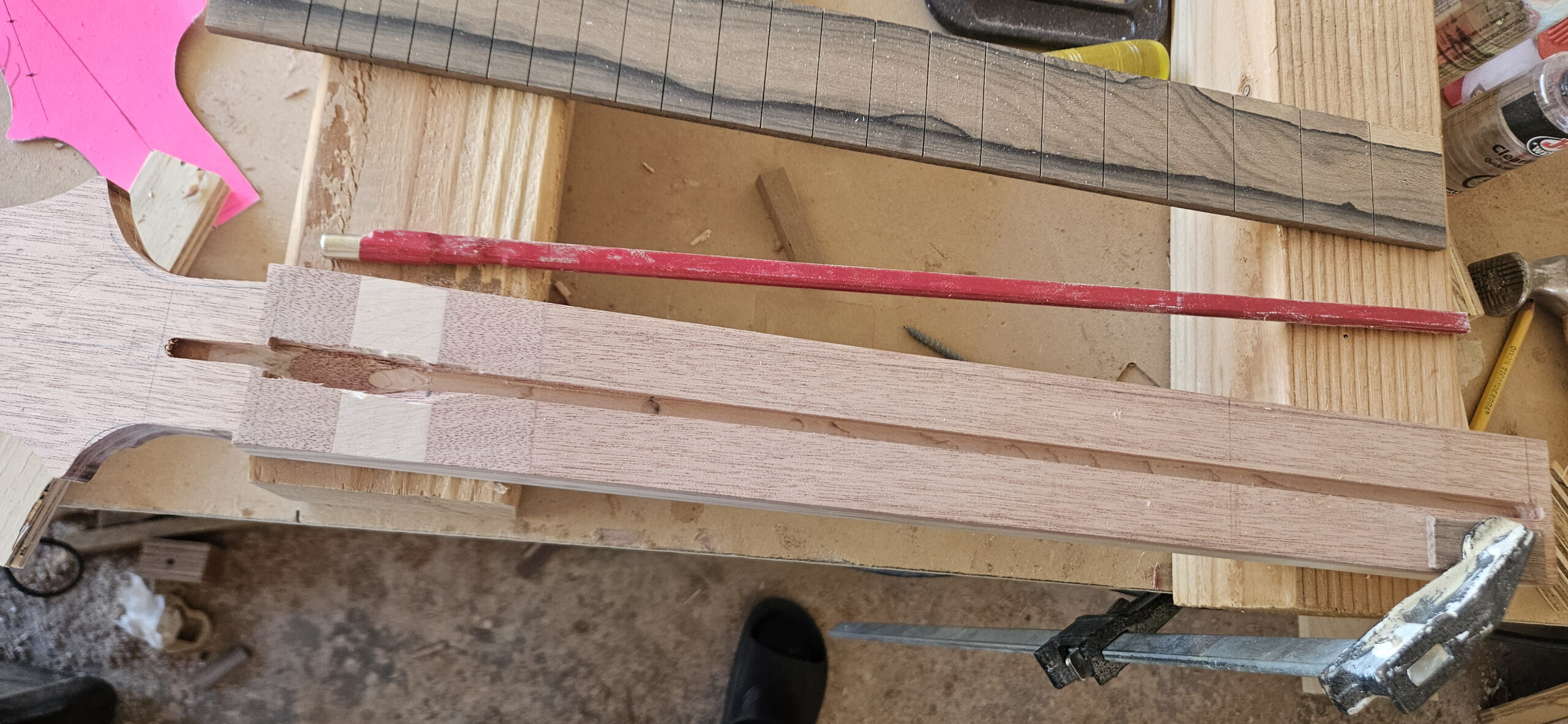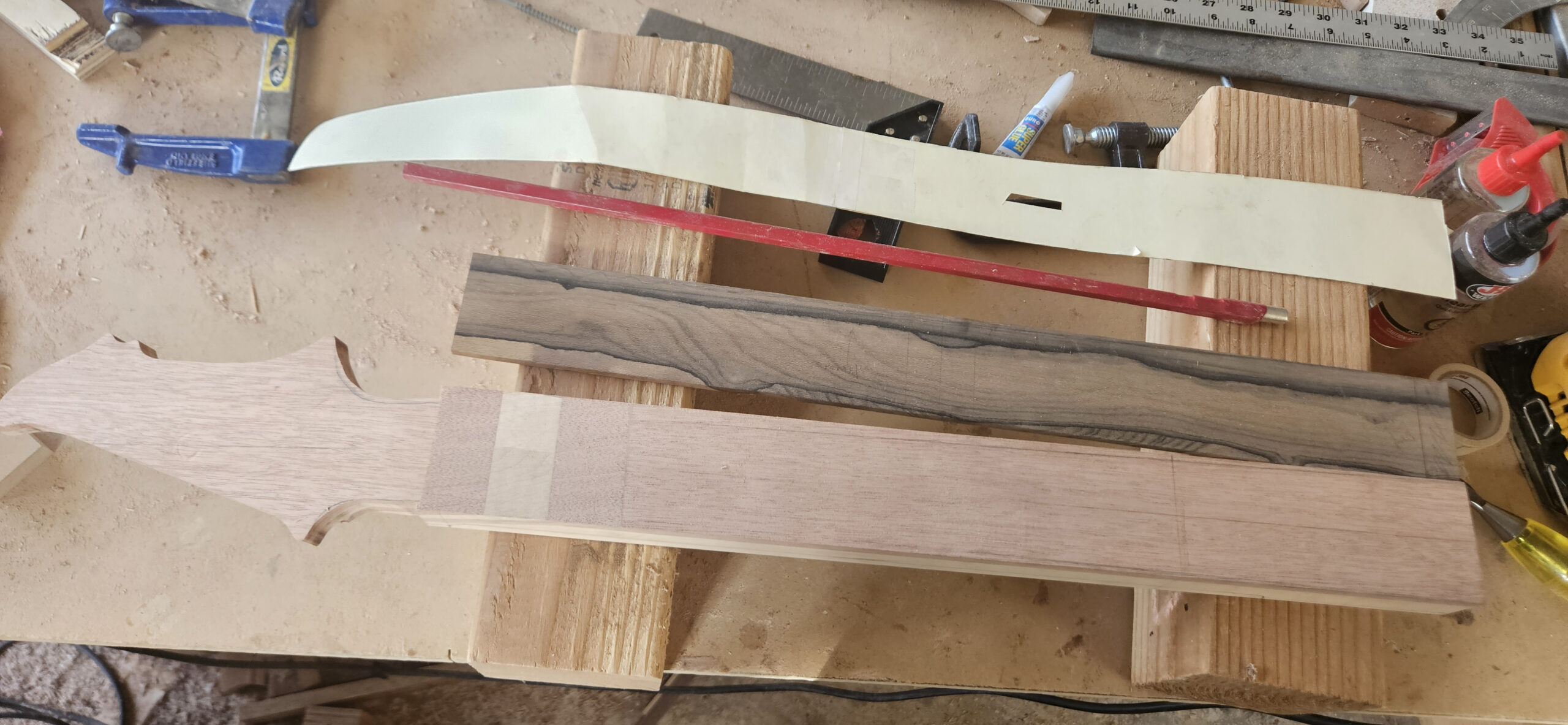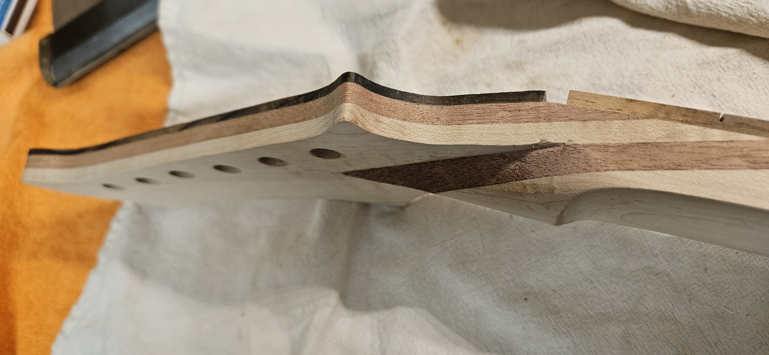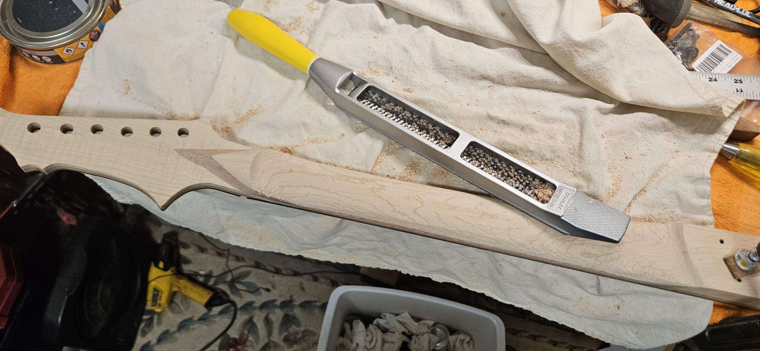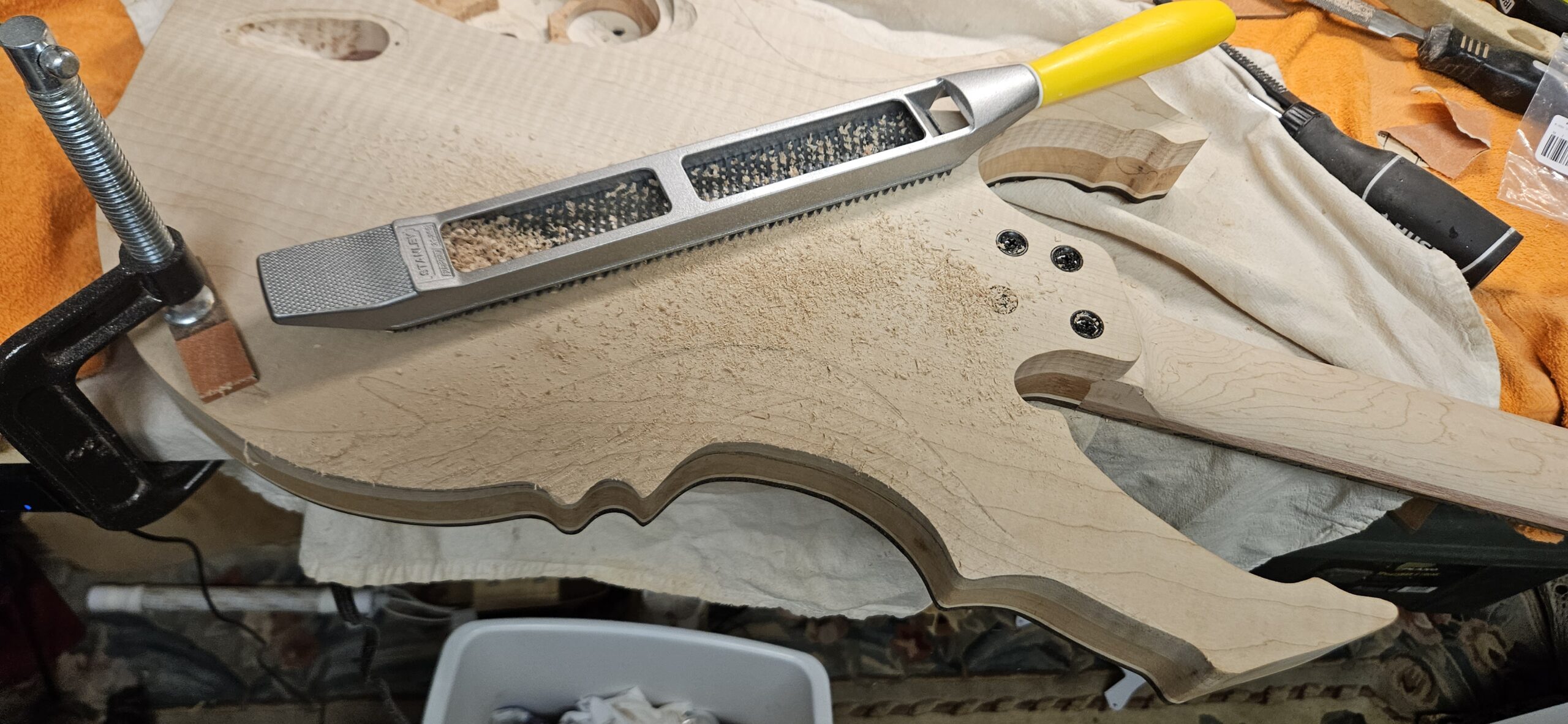 The finish is a seal of blonde shellac. The front was just finished with a combo of beeswax and carnauba wax. Oil based finishes darken ziricote too much so you can’t see the figure, so I wanted to keep it simple. I know the wax is not super hard, so there may be some challenges keeping it from getting scratched and dinged in the future. The back I treated with medium brown and golden brown TransTint to deepen the curls in the maple, but it didn’t come out as strongly marked as I’d have liked.