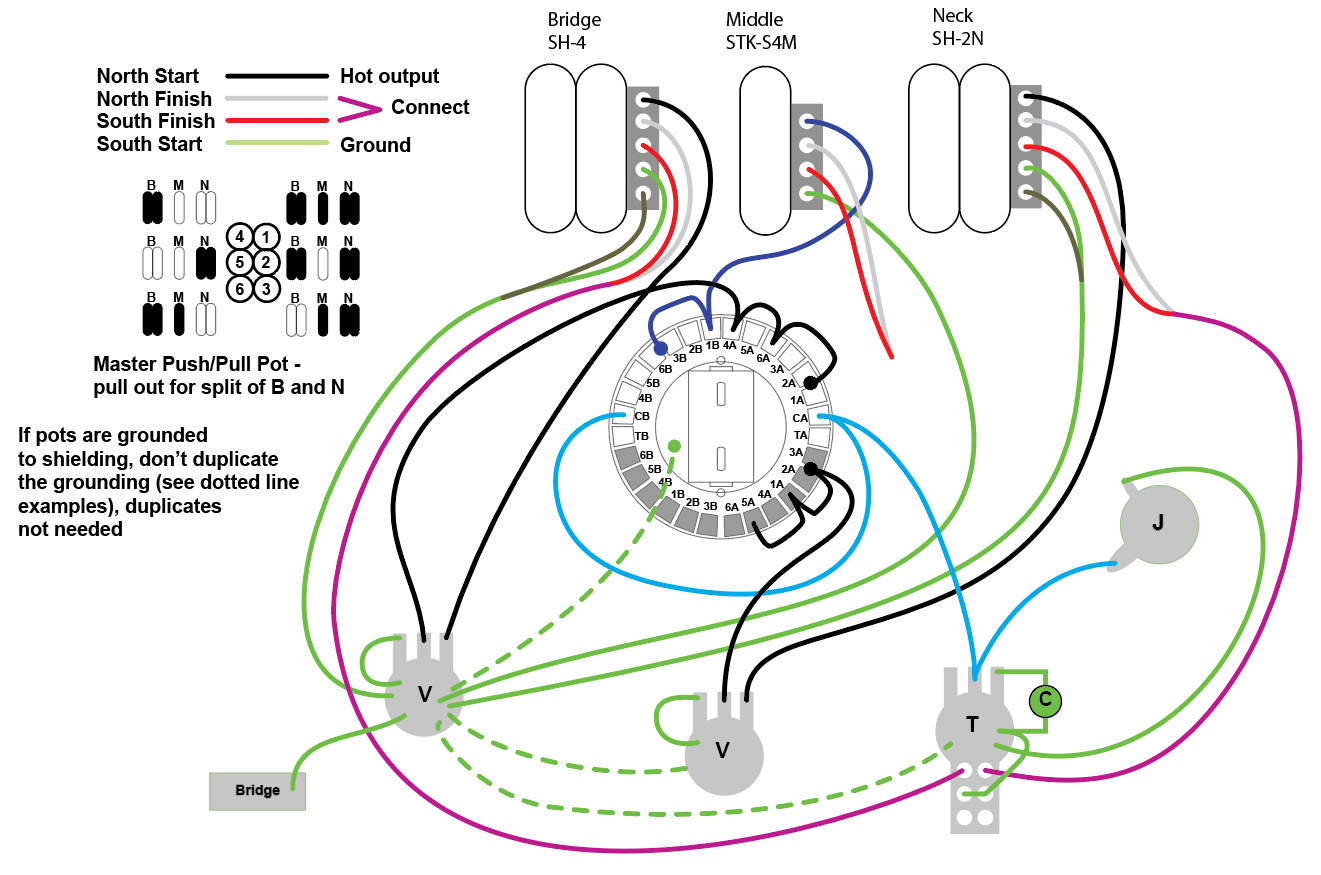 For wiring, I decided to do something pretty complicated. I found a 6 position switch, the 3×3-05 Free-Way Toggle (Ultra) which has 28 terminal positions that can be used in an insane number of combinations. I decided to wire the six positions as…