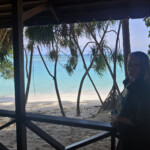 Lankayan Island. . . our last stop on our Borneo adventure. The boat from Kinabatangan took us to a jetty, but not the right jetty. We were to leave for Lankayan from a a different jetty. I tell y’all, I never thought I would be on an adventure that involved multiple jetties. The resorts we enjoyed took care of us before and after we enjoyed our stays. The driver with Kinabatangan drove us partway to the new jetty, but then he got a call telling him that the driver with Lankayan was going to pick us up from Jetty #1 and take us to Jetty #2. We didn’t know that at the time, because he did not speak strong English. We did notice that we seemed to be going back the way we came. When we got back to Jetty #1, a different driver (who spoke English a bit better) explained that we were to wait there for the Lankayan driver to pick us up. So, we did. Kelly sat patiently. Riki paced and explored. She found several very skinny stray cats and some very pretty birds, some washed-up trash, and a huge yacht anchored in the bay. Eventually, the driver took us to the Lankayan jetty. We were a bit early for departure, so we went into a little store nearby and looked for some chocolate and soda. We found some of each, as well as a salty snack for Kelly.