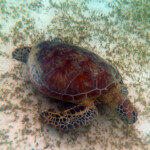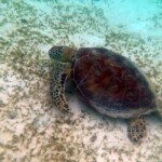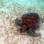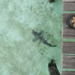 The island, as you can see by the pictures, is absolutely gorgeous. It is one of three islands that is part of a sea turtle preserve. It is also a world-class dive resort. The island is tiny. You can walk around the whole thing in less than ten minutes. Many of the buildings associated with the island are built on piers – the dive center/boat dock, the main lodge/restaurant, and half of the bungalows. The buildings are connected to the island by high boardwalks. The boardwalk out to the lodge passes over shallows that are favorite spots for sea turtles to graze on seaweed. We spotted turtles several times when we crossed the boardwalk. We also saw weird-looking bump-head parrotfish and black-tipped reef sharks.