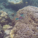 There was not much to see off our bungalow, but it gave me a chance to get used to the equipment. It is pretty weird to have your face in the water and still be able to breathe. But you must breathe from your mouth. If you try to breathe out your nose, your mask sucks up tight against your nostrils and makes you feel like your mask is trying to kill you. Maybe that is just my experience? Also, my snorkel tube kept kinking until Kelly adjusted it for me. It was better unkinked, for sure.