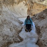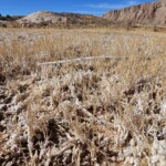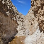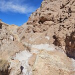 In the distance we could see many amazing features including the Sandias, Prieta Mesa, Cabezon and the Jemez Valley, many of our favorite areas to explore. After leaving the Devil’s Hole, we wandered down through a Gypsum Gorge with incredible canyon walls. There were small ice-flows in the bottom and a trickling, muddy stream, also with winter algae.