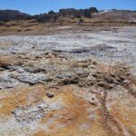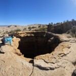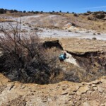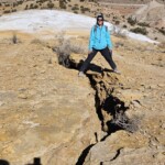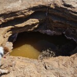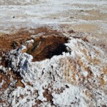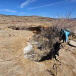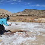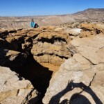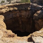 Areas near the north end of the Anticline have deep gypsum formations, portions of which are mined to develop drywall for building homes in Albuquerque. In other areas calcium carbonate is leached out from underground by springs that develop fascinating travertine domes with unusual textures as the minerals precipitate out. Many of these domes are formed along the hillsides, and some of them have collapsed making deep pockets. One small spring was bubbling with gasses released from underground. The most impressive of the travertine formations is the Devil’s Hole, a deep collapsed dome that we found to have algae-rich water in the bottom. Super cool.