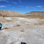 To capitalize on the continued February warm trend, we decided to revisit the Ojito Wilderness, one of our favorite nearby places in New Mexico. One section of the Wilderness includes the San Ysidro Anticline. This is a long uplift that has been eroded away through the middle exposing a lot of Jurassic and Cretaceous deposits. Dinosaur bones, gastroliths (dinosaur crop stones) and other fossils can be found in the area. One of the largest dinosaur skeletons ever discovered, of a Seismosaurus, was found nearby.