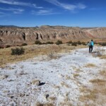 Our winter adventuring has recently taken us to local, nearby areas. A popular site is the San Ysidro Anticline of the Ojito Wilderness near the small village of San Ysidro. Folks come here for biking and hiking. The north end of the Anticline gets somewhat less attention, however, but holds some of the most interesting treasures, and that’s where we adventured.