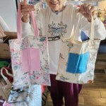 My dear mother has been sewing hundreds of dresses for little girls in Africa, and she has lately been sewing tote bags to carry their things to school and elsewhere. She’s also made so many baby blankets and little-kid smocks and bibs to give away. She is such a truly giving and loving woman, and I am blessed to be her son.
