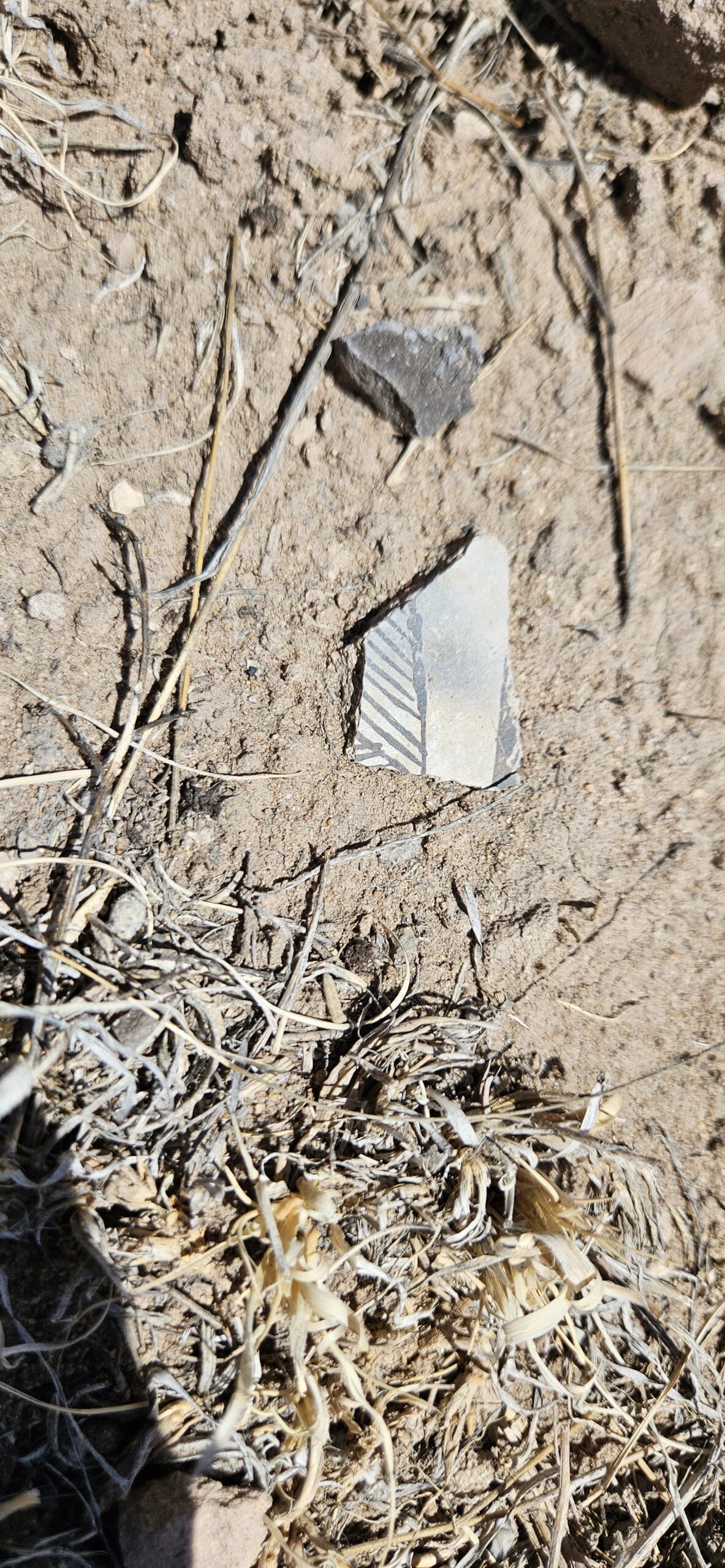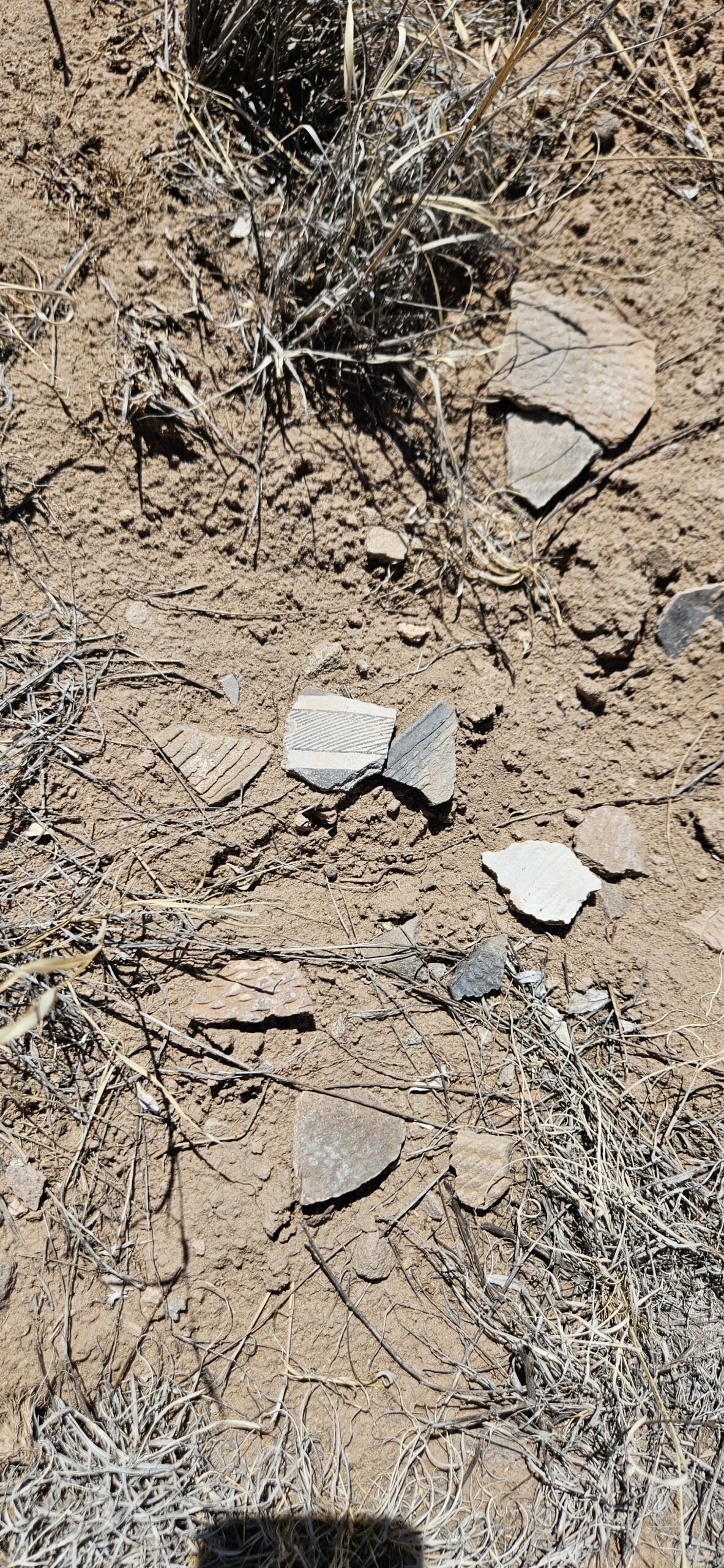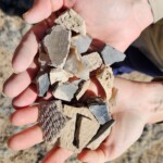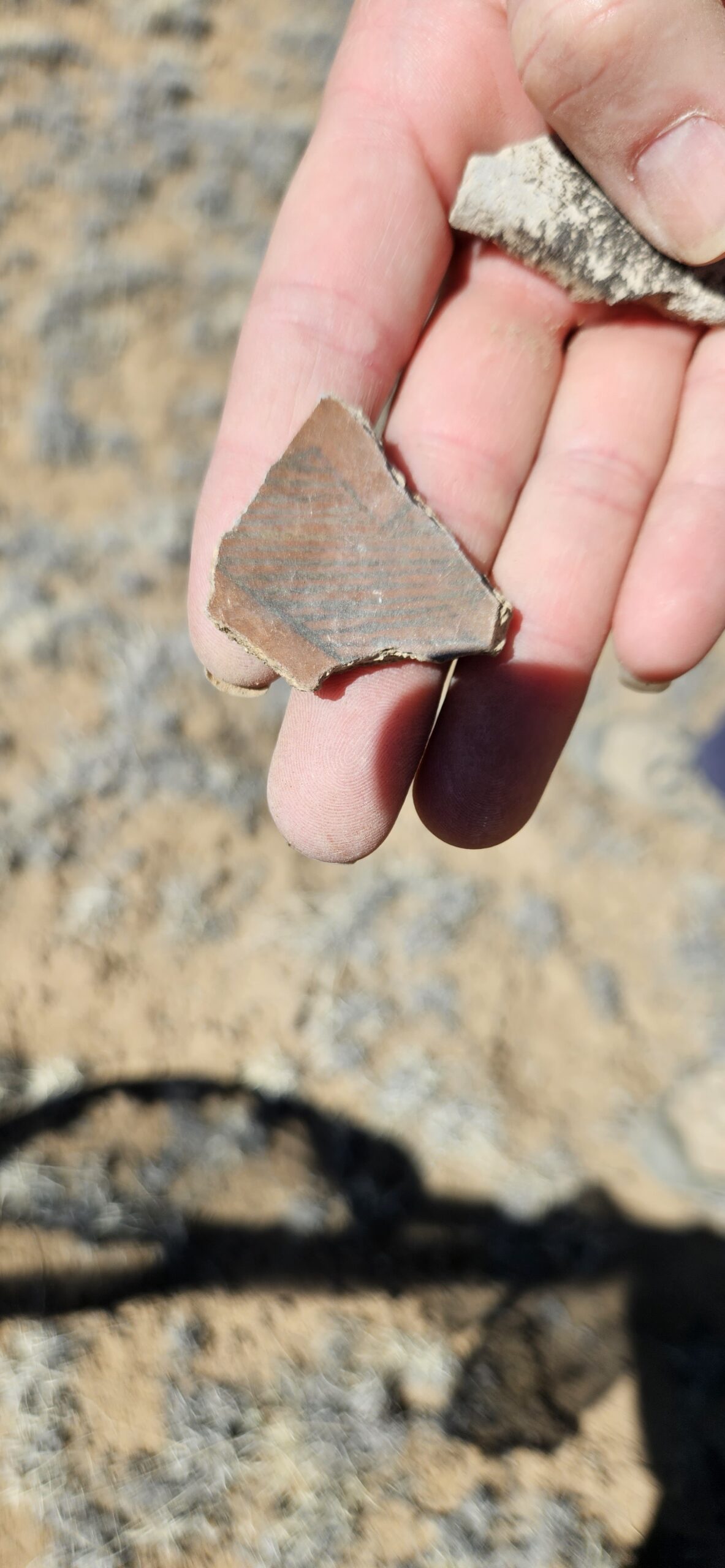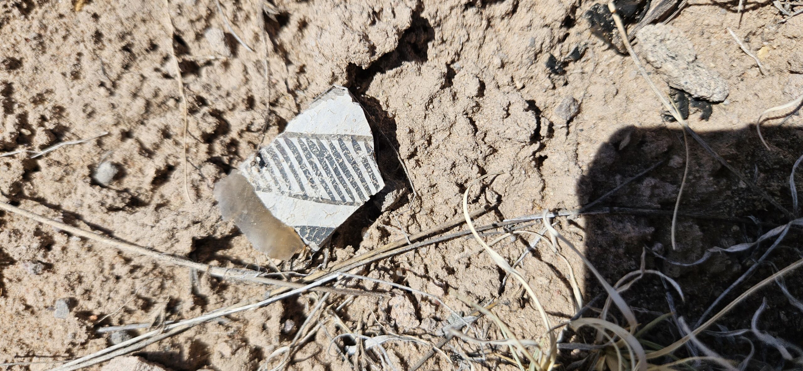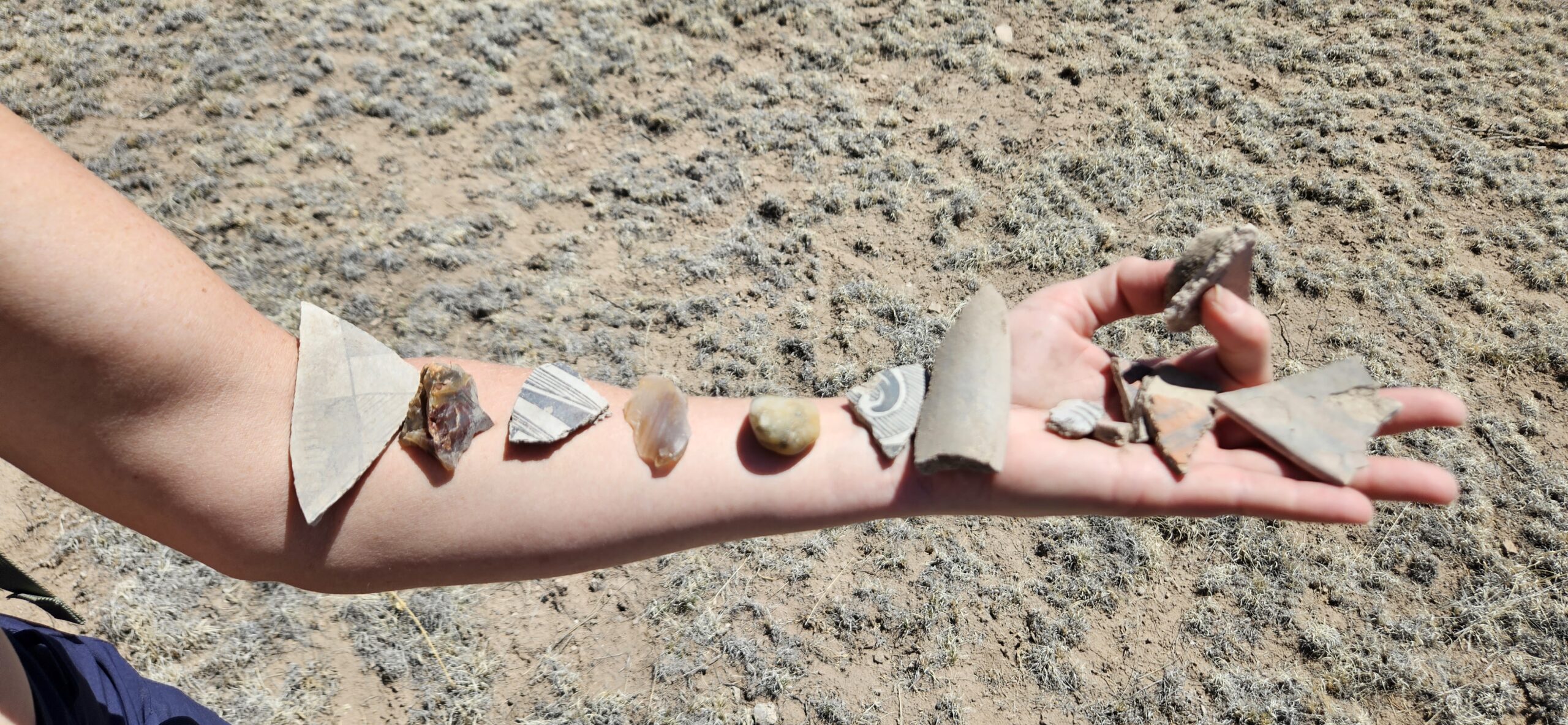 I had a wonderful time on our adventure today!! I loved looking at all the lovely potsherds scattered over the ground! Some were beautifully impressed on the outside with a smooth black glaze inside. Others were glazed inside and out with white and red glaze and decorated with intricate black designs. Some were quite large, over 4 square inches! My favorite pieces to find were rim fragments. I also loved the churt pieces, again due to the amazing variety of colors, some were lovely when held up to the light.