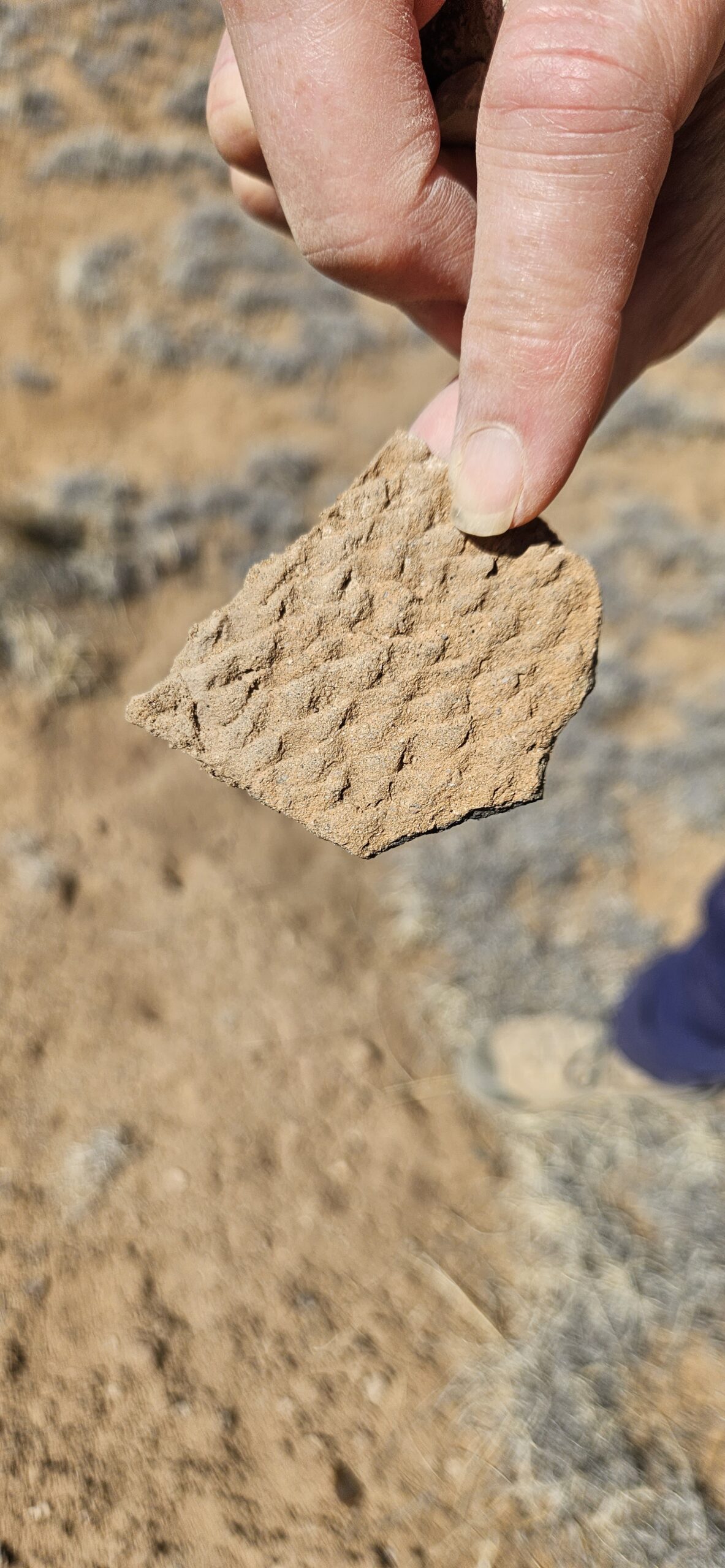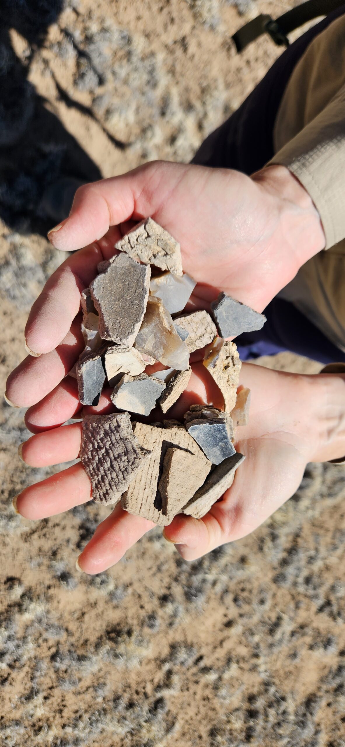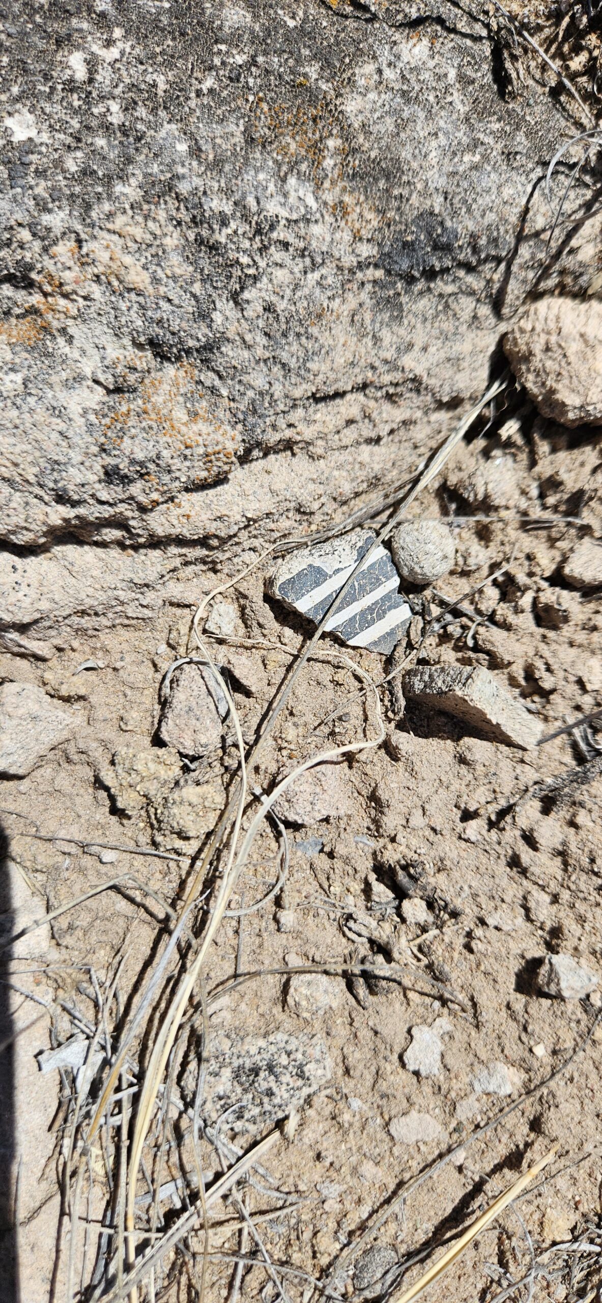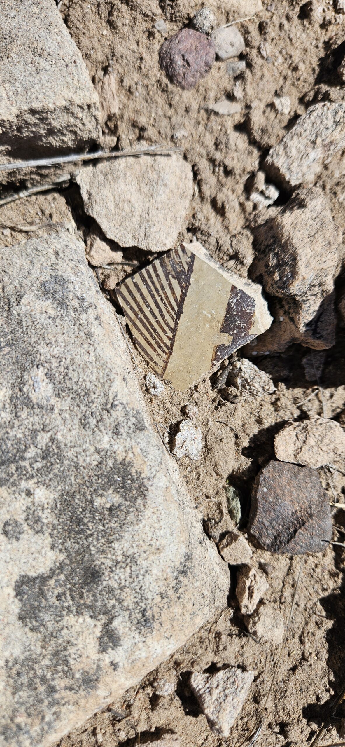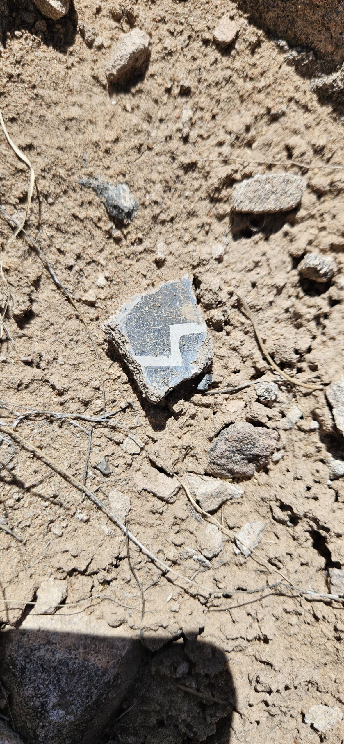 I had a wonderful time on our adventure today!! I loved looking at all the lovely potsherds scattered over the ground! Some were beautifully impressed on the outside with a smooth black glaze inside. Others were glazed inside and out with white and red glaze and decorated with intricate black designs. Some were quite large, over 4 square inches! My favorite pieces to find were rim fragments. I also loved the churt pieces, again due to the amazing variety of colors, some were lovely when held up to the light.